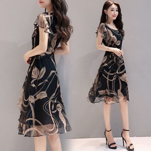 上品で落ち着いたシフォンワンピース。これ1枚でエレガントに☆