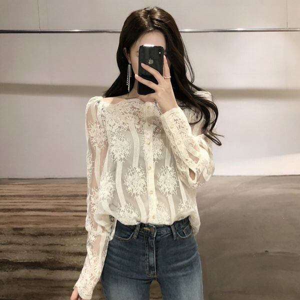 総レースブラウス シースルー 長袖 トップス レディース シャツ