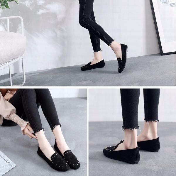 ローヒール フラット パンプス スエードシューズ スタッズ スリッポン