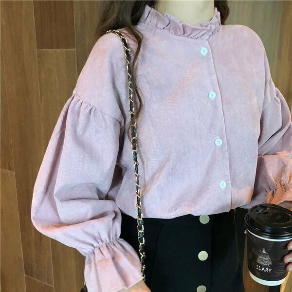 スタンドカラー バルーンスリーブ シャツ ブラウス フリル トップス カットソー