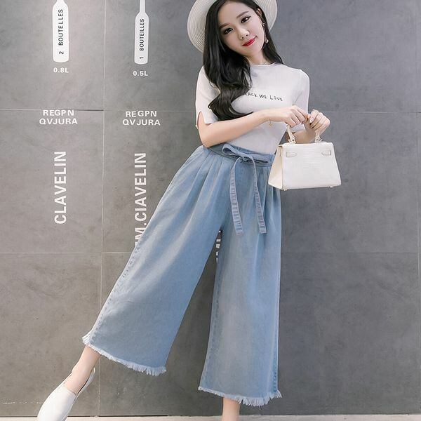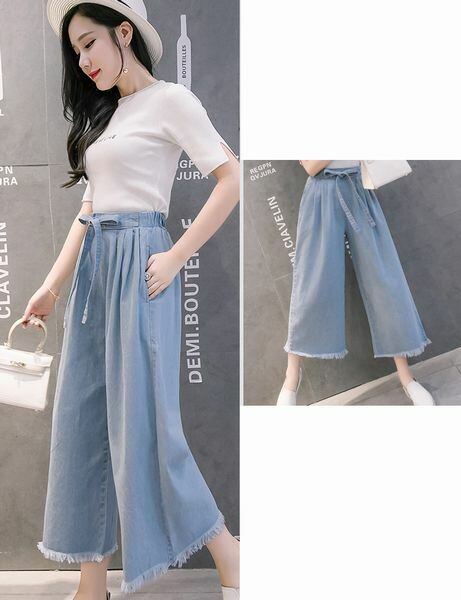 ワイドレッグ デニム ジーンズ バギー フリンジ ハイウエスト パンツ