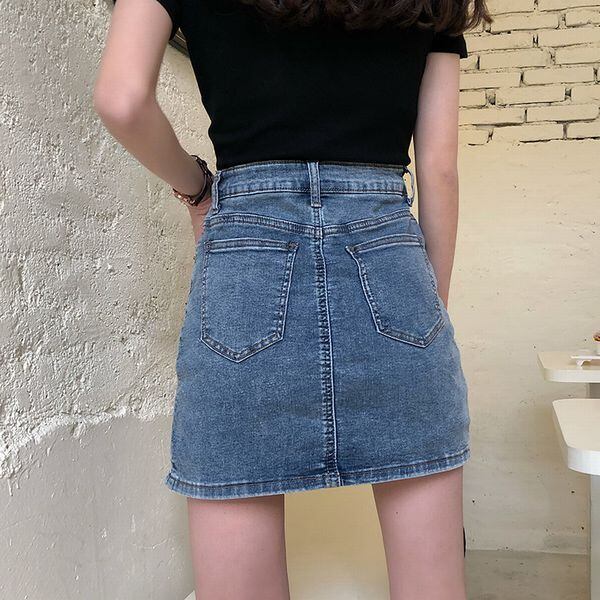 デニムミニスカート ハイウエスト Aライン スリット インナー キュロット