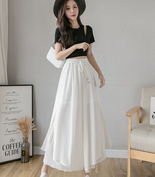 シフォン ワイドレッグ キュロット スカーチョ マキシ丈 ガウチョパンツ