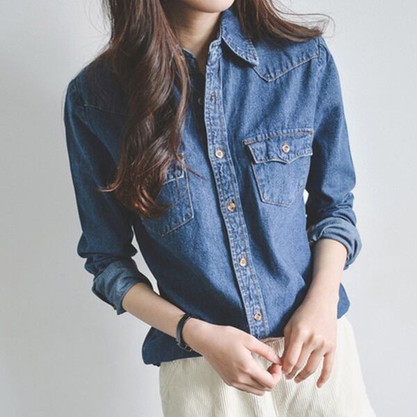 デニムダンガリー 長袖 ロールアップ レディース シャツ