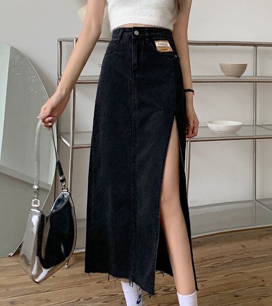ハイウエスト デニム スリット入り ロングスカート 大きいサイズ