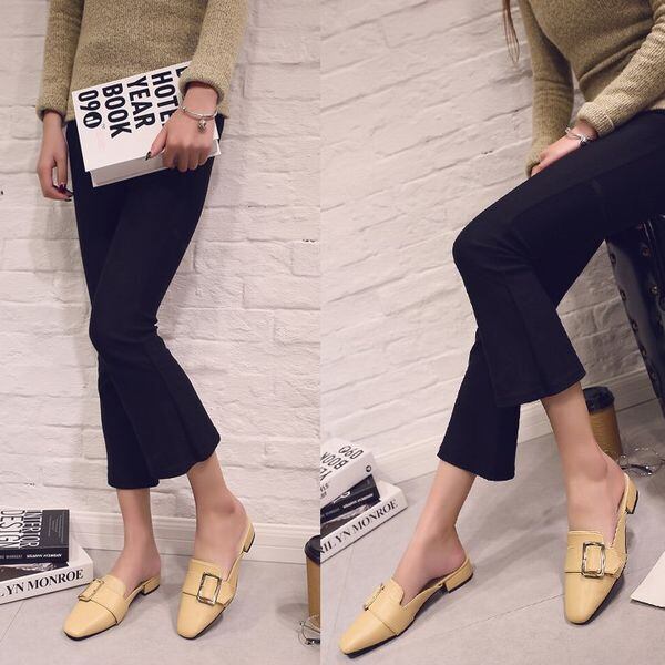 ローヒールシューズ スクエアトゥ サンダル ミュール
