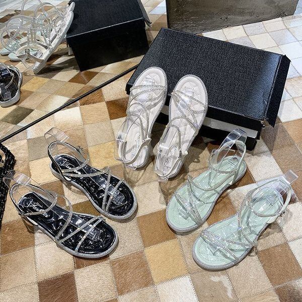 ラインストーン ストラップ クリア フラット サンダル レディース シューズ