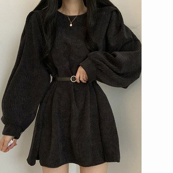 フレンチデザイン パフスリーブ コーデュロイ Aライン ミニワンピース 秋冬