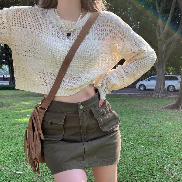 長袖 サマーニット ミリタリー タイト ミニ スカート 上下 セットアップ