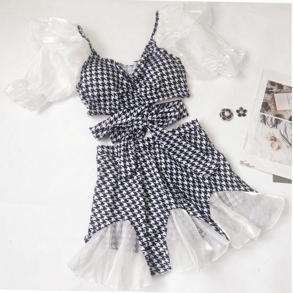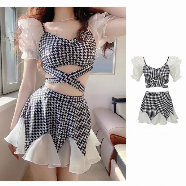 千鳥格子 ワンピース風 ビキニ フリル 体形カバー 水着