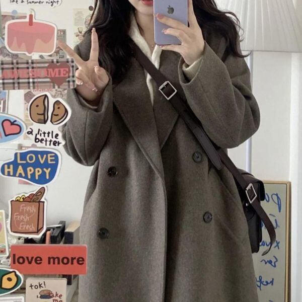 シンプル マキシ丈 ダブルブレスト ロング レディース チェスターコート