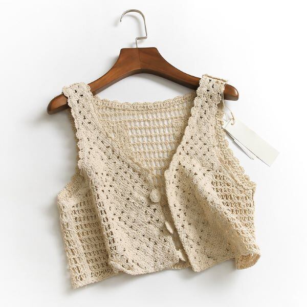 総レース ニット ベスト 刺繍 フロントボタン 前開き ショート丈 レディース ベスト