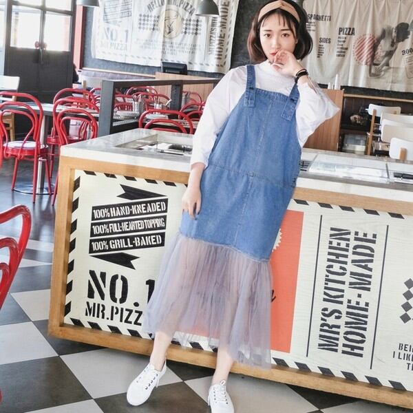 季節も問わずインナー次第でいろんなスタイルに使えるデニムのワンピース。裾のシフォンが程よい透け感◎