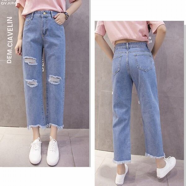 ダメージ 加工 ジーンズ ヴィンテージ風 フリンジ ワイドデニムパンツ