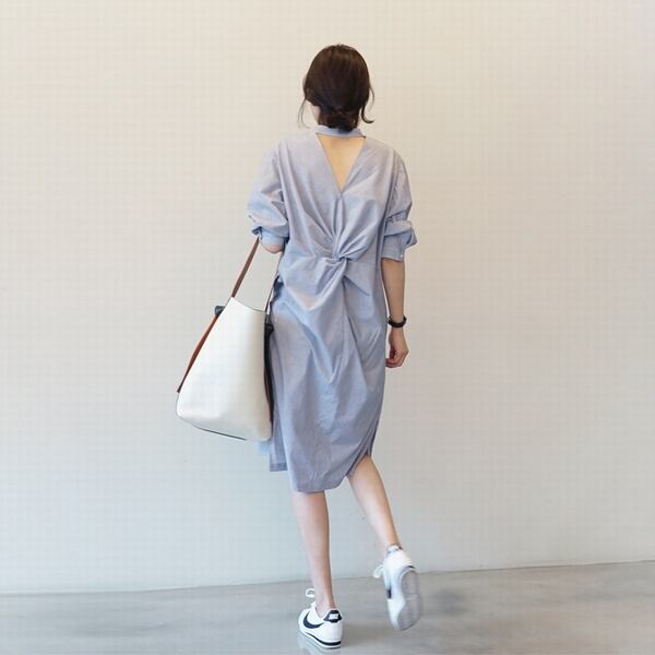 さらっと1枚で着られちゃう優秀ワンピ♪背中の開いたデザインがシンプルの中にセクシーさをプラスしてくれます♪